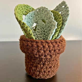 Yarn: Green cotton yarn (for the leaves) & Brown acrylic yarn (for the pot)