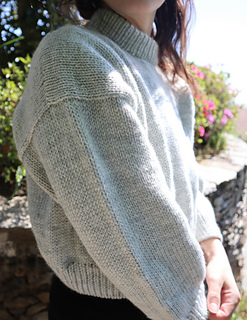 The Prairies Sweater is a basic drop shoulder sweater. It has a boxy and a more fitted look, thanks to the tighter ribbing at the hem and cuffs and a closer folded collar. Although at the body it still has plenty of positive ease (approx. 25cm/10”).