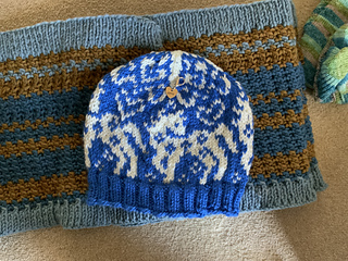 Prancing Ponies with a Carousel crown dance around this Fair Isle Hat with a Ribbed or Picot Cuff.