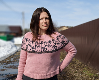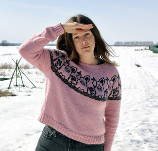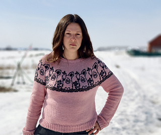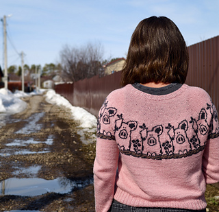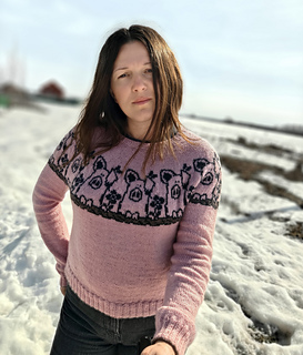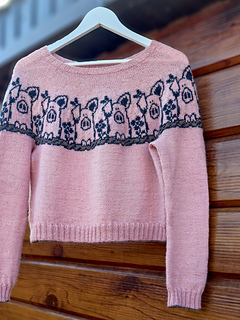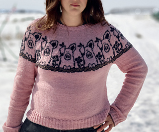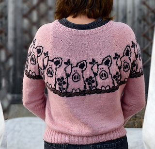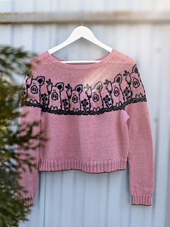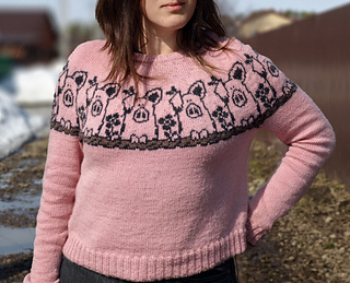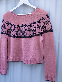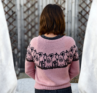 Pretty in Pig Pullover is a unisex, top-down pullover available in ten different adult sizes. It offers long or elbow length sleeves options.