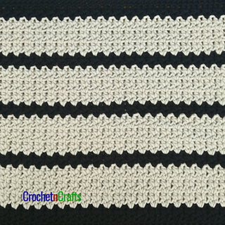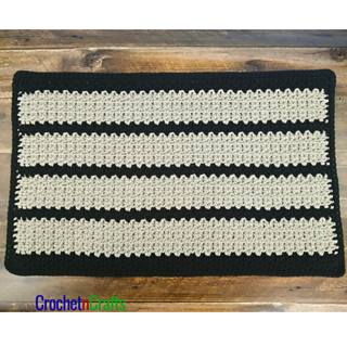 The crochet mat pattern is given in one size, but a stitch multiple is provided to make it easy for you to adjust the size as needed to fit any space in your home.