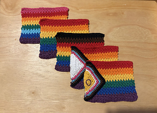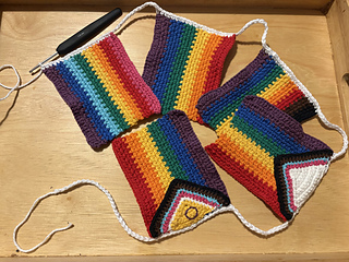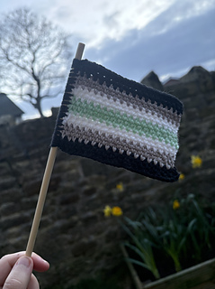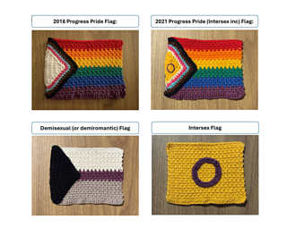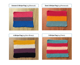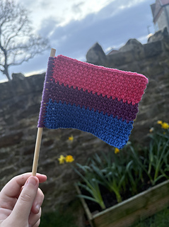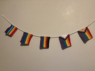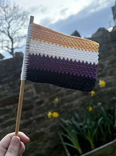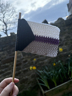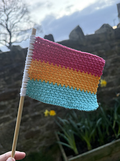 This is a written crochet pattern for the “Pride Flags (& Bunting)”- which explains how to make any pride flag that has 3 to 8 horizontal stripes, as well as the two progress pride flag variations (2019 & 2021), demisexual / demiromantic flags and the intersex flag. Instructions are included on how to attach the flags to a dowel, and also how to create bunting with the flags. Alternatively the flags could also be used just by themselves as patches sewn onto jackets and/or backpacks etc.