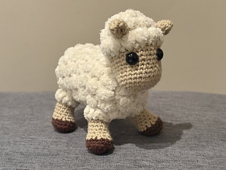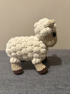 This pattern is suitable for crocheters that are already familiar with amigurumi and basic crochet stitches/techniques (e.g MR, sc, hdc, dc, inc, dec, FLO, BLO etc). One speciality stitch is used (bobble stitch)- a detailed tutorial with images explains how to complete this. Please note however that the bobble stitch is used extensively in the sheep, so you will need to be (or able to become) confident with it in order to complete the pattern. Most stitches are worked in rounds- some elements of the jumper requires working in rows (e.g the ribbing).