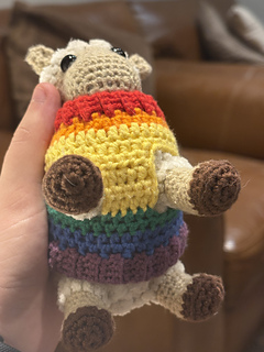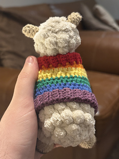 After reading about Stücke’s amazing flock (and being part of the lgbtq community myself) I was inspired and so decided to create this pattern so that anyone could make their own little queer flock! This is a written crochet pattern for the “Pride Sheep”- an amigurumi plushie sheep, with a removable rainbow pride jumper. The pattern also briefly explains how to alternatively create other pride flag jumpers that have a different number of flag stripes (3 to 7 stripes).