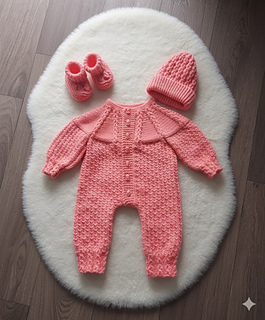 This beautiful romper set is a delight to knit. It’s knitted from the top down on single-pointed needles and has clear line by line instructions. The simple memorable stitch pattern makes this set easy to knit and ideal for knitting whilst watching TV.