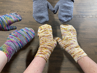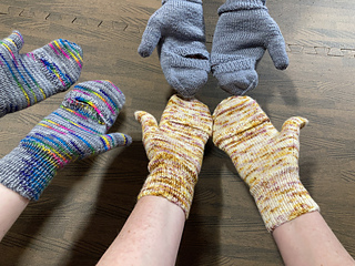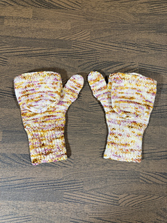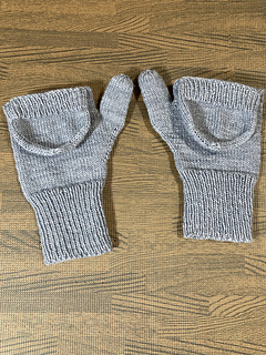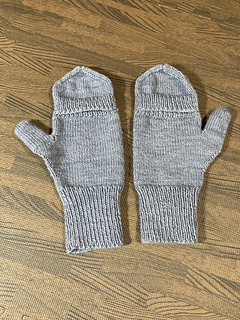Mittens knit in the round with fingering weight yarn. Featuring a flip top design to free the fingers for use when needed. Perfect for outdoor work. Lightweight for spring and fall.