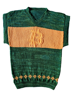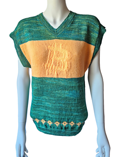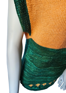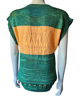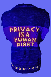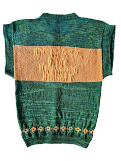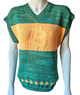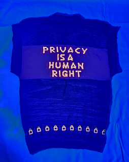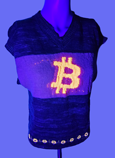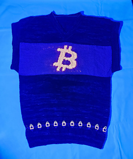 A contribution for cypherpunk day: Privacy & ₿ UV-hidden stranded colorwork in a sleeveless sweater/slipover.