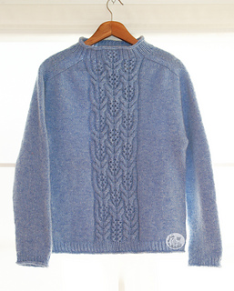 ● short pullover in stockinette stitch with lace and cable pattern in front