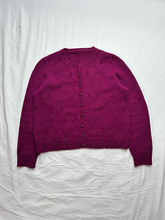 The Prune Cardigan is a top-down knit featuring diamond motifs and a seamless European shoulder construction. The result is a versatile cardigan, designed to be worn with approx. 5 cm / 2” of positive ease, perfect layered over a dress or casual jeans.