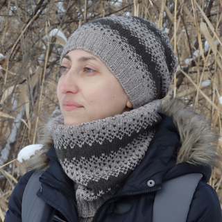 Ptiloris Hat is a simple unisex beanie made with sport weight yarn in two colors. The colorwork pattern is inspired by plumage on a breast of the Paradise Riflebird (Ptiloris Paradiseus) with its subtle transition from black to gray.