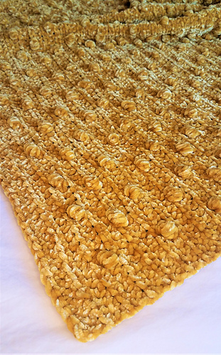 The size of this blanket is very easy to adjust. Just repeat steps 2-5 as many times as you need to achieve your desired length, or add additional (puff stitch, 5 hdc) sections to widen the blanket.