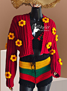 Crochet Puffy Flower Ribbed Cardigan by shylercrochets