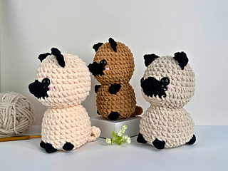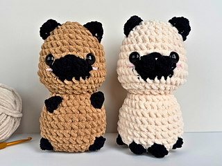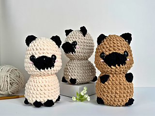 This bundle contains 3 complete pug dog crochet patterns: