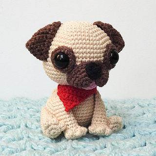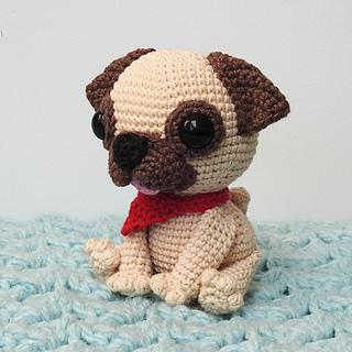 Crochet your own adorable amigurumi Pug dog! Using the listed materials, the finished dog will end up approximately 12cm (4.7”) in height. This downloadable PDF document is 8 pages long and includes easy to follow, step-by-step instructions with pictures.