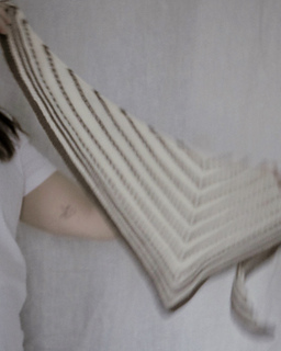 Knit in simple stockinette, interrupted by garter stripes in a contrast colour, it’s a piece for movement and stillness alike, meant to be wrapped around you on days when the air feels alive.