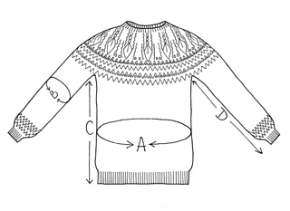 B : Hauteur sous emmanchure du pull 34 34 34 35 36 37 38 39