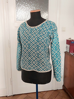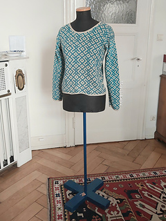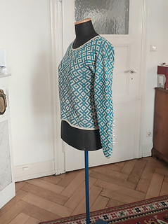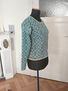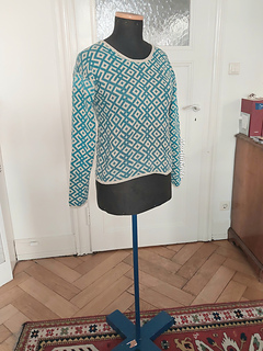 The sweater is worked flat and consists of 4 parts that are then sewn together. Only the collar is worked in rounds.