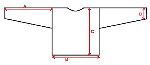 Finished measurements (see the pullover construction picture): A = 50 cm, B = 46 cm, C = 50.5 cm and D = 9.5 cm.