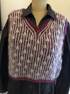 Blingbling is a short vest knitted in the round from the bottom up to the armhole, then in rows.