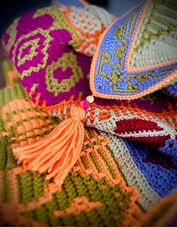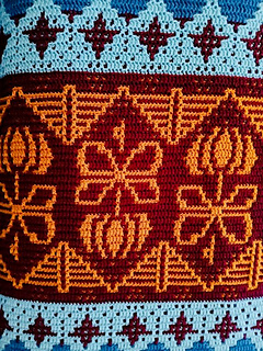 This is a lovely pattern with fun seasonal motifs worked in mosaic crochet technique, row by row and from the bottum up. It’s available in: