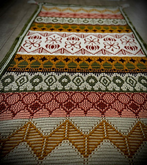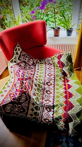 - 13 Diagrammen (voor links- en rechtshandigen) en generieke geschreven instructies voor mosaic overlay gecombineerd met tapestry (en intarsia).
