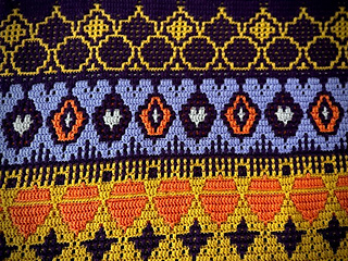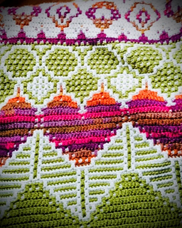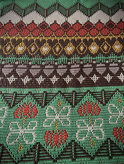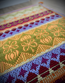 - Standard overlay crochet gecombineerd met tapestry and intarsia (diagrammen en geschreven instructies).