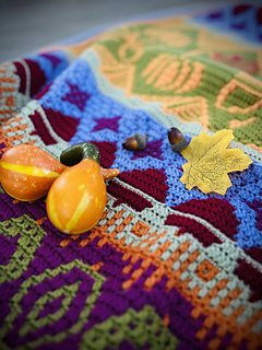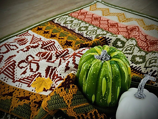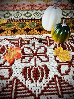 Dit is een geweldig patroon vol met leuke motieven die bij het seizoen passen, gehaakt in de mozaïek techniek (van rij tot rij en van beneden naar boven).