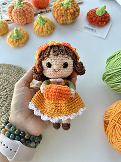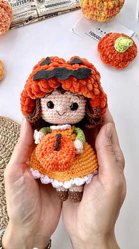 This PDF pumpkin doll pattern is written in English using US crochet terms.
