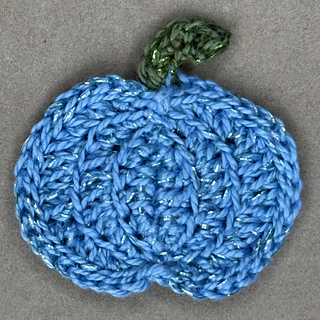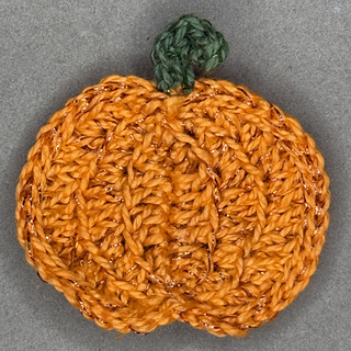 Each pair of round pumpkins uses 8 yards of in orange (or your main pumpkin color), and 1 yard in green. A pair of squat pumpkins uses 7 yards in your main color, and 1 yard in green.