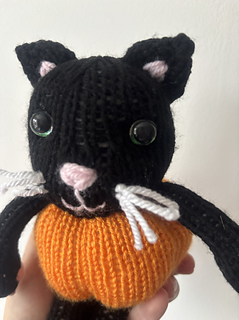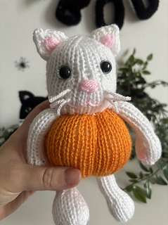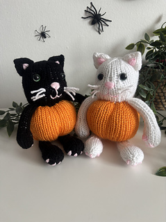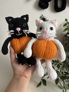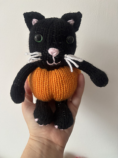 Learn to knit this super cute cat in a pumpkin soft toy. They are so fun and quick to make, and make a great gift for children and adults. You could make them in any colour you like, or even make a zombie cat! Your cat will measure around 22cm tall. This is a great pattern for beginner to intermediate level knitters.