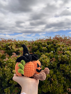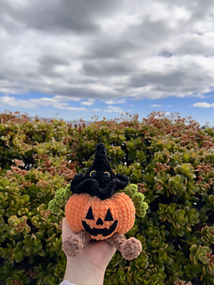 - Hooks: 4.5mm (Pumpkin) and 5.00mm(hat, legs, stem and tendrils) or one of your preference, size will vary.