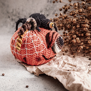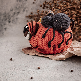 This Pumpkin with a spider crochet pattern includes 29 pages of detailed crochet description, about 107 photos, and a list of materials.