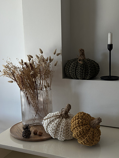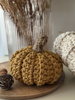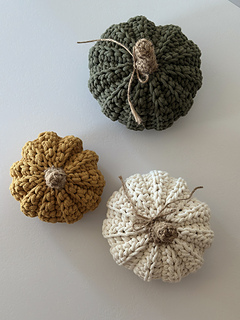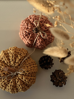 Crochet decorative pumpkins in four sizes — a modern blend of cotton cord and jute that brings autumn warmth, natural harmony, and handmade charm into your home.