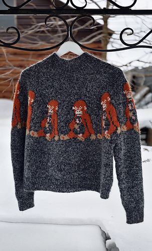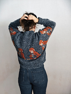 Punch the Monkey Sweater is worked seamlessly from the top down using a circular yoke construction, allowing for effortless try-ons and easy customization of body and sleeve length. Designed with an intentionally oversized fit, it features a deeper yoke and lowered armholes that create a modern, relaxed silhouette.