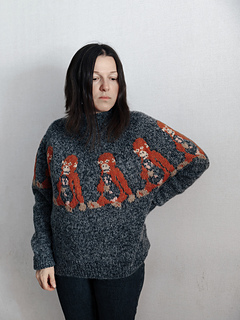 His story moved me deeply — the tenderness, the vulnerability, and the quiet strength he showed stayed with me long after I first saw him. I felt compelled to capture that feeling in something warm and comforting, and so this sweater was created, carrying the image of this sweet little monkey and the emotion his story inspired.