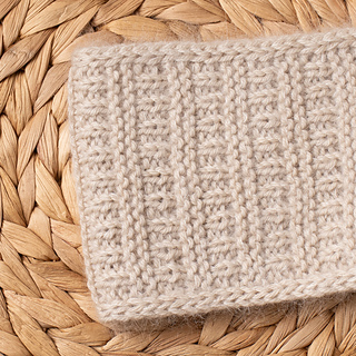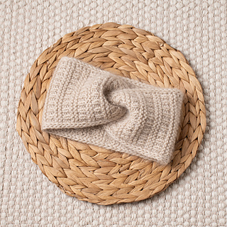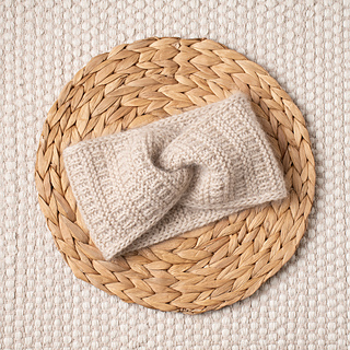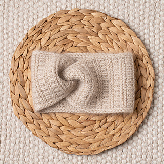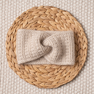 The Pure Silver Headband is knit flat with two strands of yarn held together – DK-weight merino wool and lace-weight mohair.