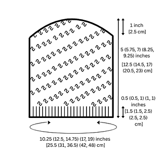 Circumference to fit: 15 (17, 19) (22, 24)“; (38 (43, 47.5) (55, 60) cm) 4-6 inch 10-15 cm negative ease