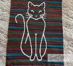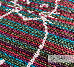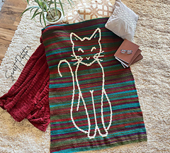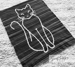 The Purrfect Cattitude crochet blanket pattern is a fun, unique, eye catching crochet blanket design. This design features the outline of a cat in striking white paired with a bold self striping yarn as the background. These two stark differences make the design pop!