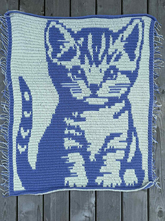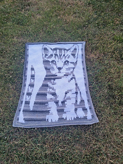 This pattern is written for 2 colors of yarn, any tapestry crochet (color changes) would be done manually and are not included in the pattern. This blanket can be made in any weight yarn, but I recommend worsted weight (4) to ensure the size. The pattern is 112 stitches across by 135 rows tall. If made with worsted weight yarn, the finished blanket should measure about 32” wide x 40” tall, not counting the fringe or border.