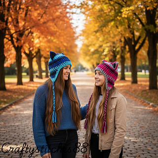 These fun, warm hats seem to be the craze these days, my daughter bugged and bugged me to make her one in colors that she wanted, and of course she wanted ears on it. So voila, here is my version of this super quick, fast and easy pattern for an adorable hat. This hat will fit a 10 year old up to an adult women. Want it bigger, or maybe even smaller, just a matter of more or less stitches. It really can’t get any easier than that. Don’t want the ears on it, no problem don’t add them. So many different options with this pattern.