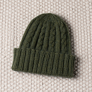 The design features a combination of ribbing and cables on a reverse stockinette background.