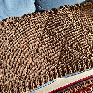 Alize Puffy can be substituted and the blanket will be the same size, but you will need more skeins of yarn. Lion Brand Off-The-Hook and Red Heart Loop-It yarns can be used with this pattern, but will yield a blanket with smaller overall dimensions. You will also need more balls/skeins to complete the pattern as is.