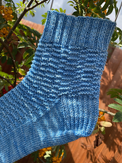 These socks are written top down, with a heel, flap and gusset construction for the heel and a rounded toe.