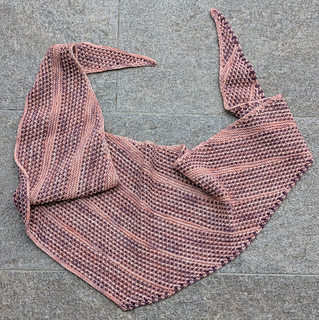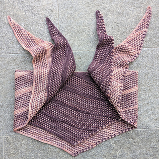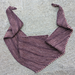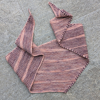 Bicolor sections alternate harmoniously with short-row sections in the main color, ensuring perfect symmetry for this triangular scarf.