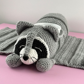 This is a digital crochet pattern (PDF), not a finished item. Adorable Raccoon Sofa Organizer Crochet pattern. Blanket approximately 49 cm/19.3” x 27 cm/10.6”!