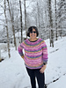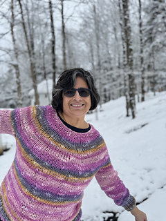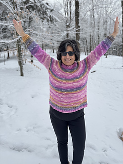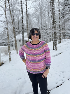 Radiant Flair Pullover is a fun colourful pullover that is fun and easy to make. It is knit on big needles so it knits up quickly.