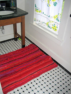 Includes easy tutorial on cutting fabric into strips for crochet or knitting. Includes links to other rug-making patterns and hints.