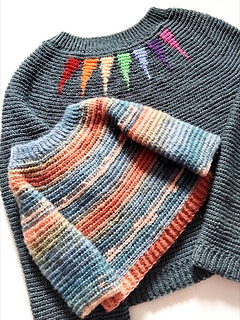 The sweater can be made for babies, toddlers and young children as well, just create a smaller yoke by removing yoke increases to match the size of the model or clothes that fit him/her