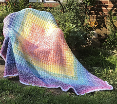 This beautiful afghan is filled with color and light without a ton of ends to weave in! It uses Lion Brand Mandala and Big Twist Renewal along with Snuggly Wuggly Yarns. All rows are worked c2c double stranded – one strand of the given color and one strand of white.