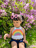 • Yarn: Lion Brand 24/7cotton or similar 4 weight cotton. 60-140 yards. I used 6 colors on rainbow top part and white color on cloud band and straps. Feel free to use any colors you like. Be creative!